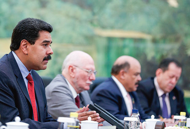 中共是委內瑞拉最大的外國債權方,過去十年,中共以「投資換石油」策略,向委國注入500億美元的投資。圖為2013年9月23日馬杜羅訪中。(Getty Images)