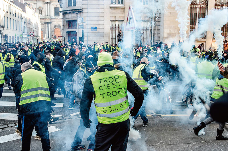 2018年底一幅幅「巴黎燃燒」的畫面讓全世界震驚,大批巴黎人身穿黃色背心在首都抗議示威,他們和軍警對峙,同時也打砸商鋪,焚燒汽車,更有甚者爬上了代表法國象徵的凱旋門進行破壞。兩個多月來,大大小小的暴力衝突不計其數。