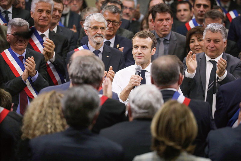 馬克龍先是請市長、鎮長、鄉長們發言,「我更希望大家以最直接的方法,講出你們的問題,我希望聽到你們的傾訴和投訴,談談你們對於危機的具體看法,和我們共同的解決方法,因為我們都是這個國家的民意代表,都是人民以選票和民主價值選出來的人。」