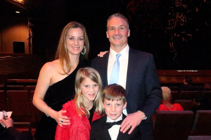 1月24日晚,達拉斯知名律師Alex Brauer(右一)與妻子和孩子在AT&T演藝中心溫斯皮爾歌劇院(Winspear Opera House)觀看了神韻北美藝術團的演出。(攝影/唐薇)
