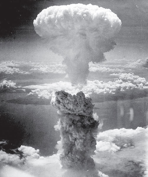 末日時鐘上次被撥快到離午夜僅剩2分鐘,是在美國於二戰期間在日本長崎及廣島投下兩顆原子彈之後。圖為當時美國投下原子彈產生的蘑菇雲。(維基百科)