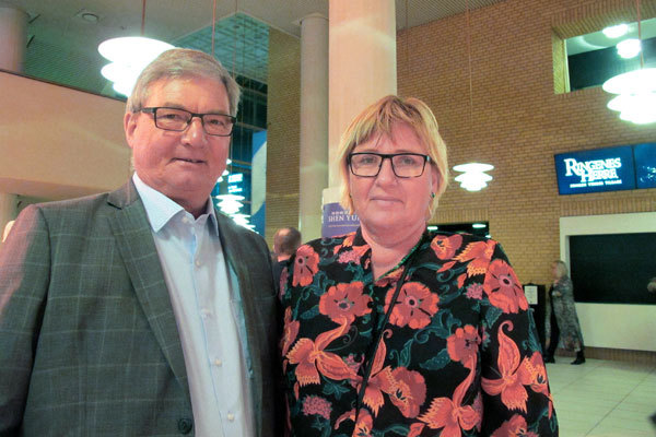 在瑞典、德國和其他歐洲國家公司擔任董事會主席的Hans Holländer和太太Gunilla Holländer,帶著瑞典扶輪社的朋友35人同來觀賞神韻國際藝術團在丹麥奧胡斯音樂廳的首場演出。(攝影/麥蕾)