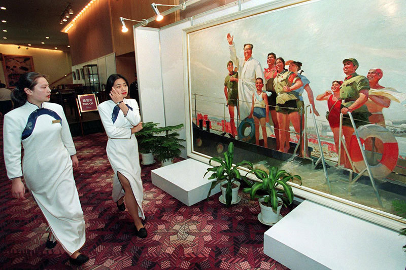1968年11月12日,被毛澤東批鬥病死的劉少奇很反感毛澤東邀自己妻子王光美一同游泳。圖為在北京一幅毛澤東游泳後的壁畫。(AFP)