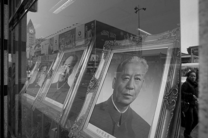 毛澤東發動文化大革命,利用群眾運動打倒劉少奇。不僅劉少奇,其全家都因此慘遭迫害。圖為北京一家店裡展示的人物畫像,右一為劉少奇。(Getty Images)