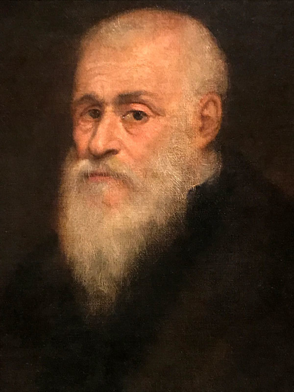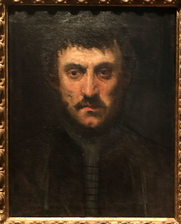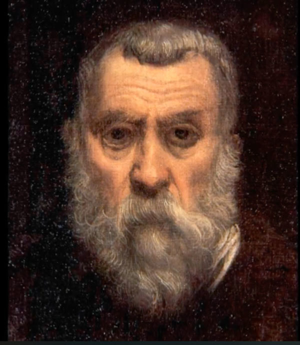 大都會展覽中有兩幅他的自畫像,第一幅前面提過是他年輕時的畫像,一個躊躇滿志的野心家;第二幅成於1550年,中年的丁托列多,悲傷的眼神,被生活磨煉過風霜的面龐,筆觸是激烈的。這完全不似文藝復興任何一個期間的畫像——有著崇高與理想,柔美而細膩;第三張畫的是老年像,約成於1588年,兩眼空洞得有如無底的深淵,不知他想傳達什麼?丁托列多一生都不曾被當時的貴族社會所接受,他不斷的用量與速度來爭取畫畫的機會,即時到了晚年還在努力爭取總都府的案子。一直到完成〈天堂〉(Paradise, 1588至1592),威尼斯人被他巨幅的畫作與人物畫像的數量所震撼,才決定付他錢。米開蘭基羅和達文西都有為爭取「工作」的前例,只是他們面對的是教皇、王公大臣,而丁托列多面向的是威尼斯商人,這其間有很大的不同。