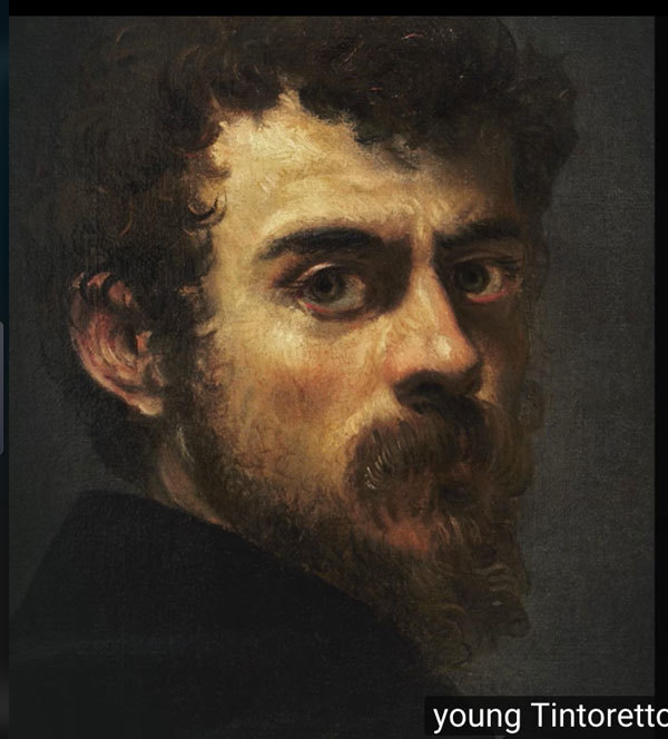 丁托列多生在一個開染房的家庭,在21個小孩中排行老大,從小在繪畫上展現特殊天分與熱衷,24 歲時,父親把他送進提香(Titian)的工作室。然而,據說他在提香的工作室只待了十天就被提香辭退了,可能是他有太多自己的想法,提香容不了他。那年(1542年)他畫了一幅自畫像,策展人拜爾說這是藝術史上第一張具有現代性藝術家的自畫像,為後來的藝術家們開了先例。畫像中是一個充滿自信野心又不安的年輕人,尤其是眼神最為動人,這也是丁托列多後來人像的特色。