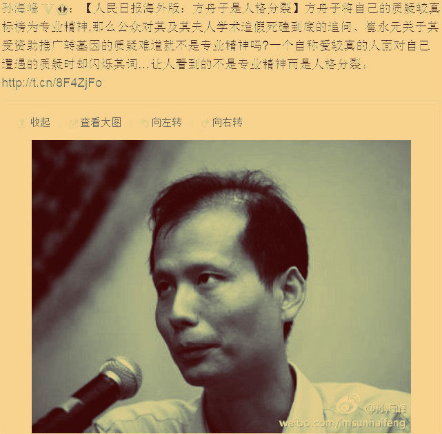 另外,實名認證為深圳大學傳播系副主任的孫海峰,曾發微博稱劉菊花是「新華社造假記者」,「靠給領導當保姆才被推薦讀研究生」,由於方舟子和劉菊花有後臺,孫海峰反而被告上了法庭。
