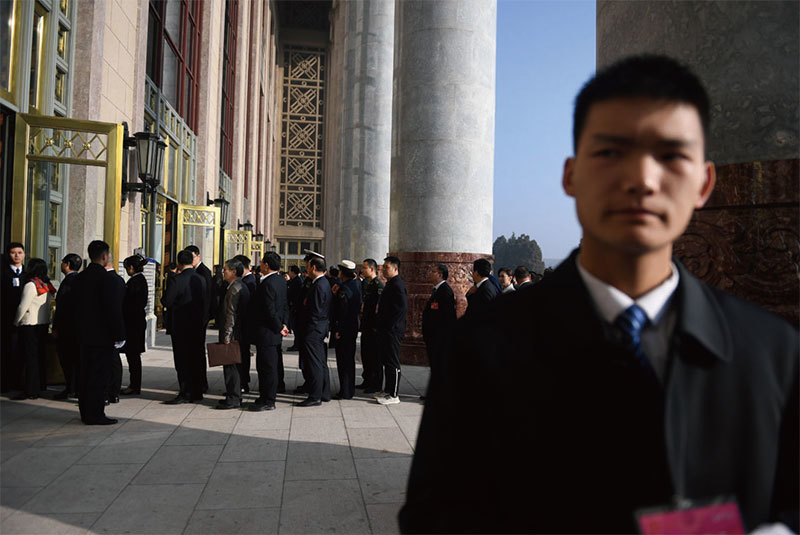 3月5日,2019年中共全國人大開幕。中共兩會正在北京舉行,場外高度戒備,場內暗潮洶湧。(AFP)
