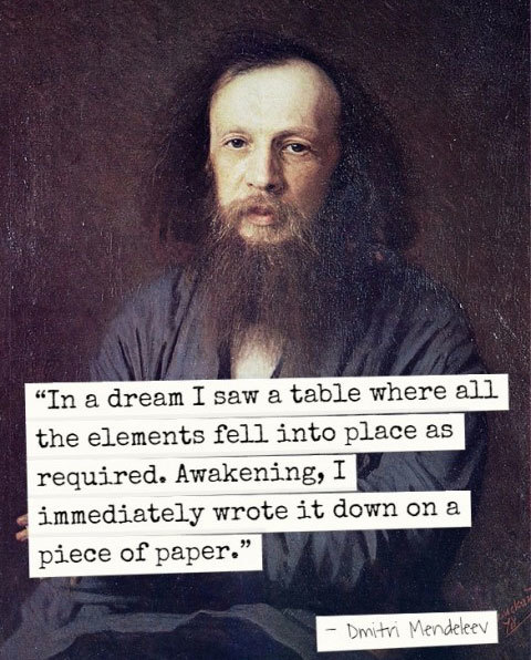 不過,他卻不得要領,門捷列夫後來回憶道:「在夢中,我看到了一張表,所有元素各居其位。醒來後,我馬上將其寫在一張紙上。」