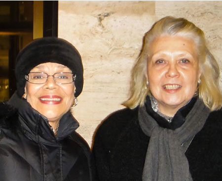 3月12日晚,神韻紐約藝術團在紐約林肯中心大衛寇克劇院結束了第八場演出。退休新聞製作人Olga Ezerski(右)和退休歌劇演員Sarah Pener(左)讚神韻勇氣非凡,振聾發聵。(攝影/滕冬育)
