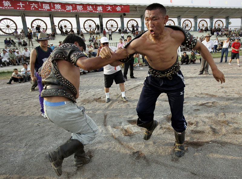 巴特爾勇猛好鬥,在那達慕大會上沒人敢跟他比賽。一次因保衛家鄉打了一場驚險的「戰鬥」後,公安局局長給巴特爾特權。圖為蒙古第16屆那達慕大會。(Getty Images)