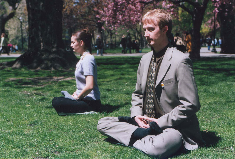 巴特爾也走入法輪功修煉,由原好勇鬥狠、拿血肉之軀搏命的人變成一位面目和善的「傻大個兒」,不再喝酒打架,看誰都樂呵呵的很和善。圖為海外法輪功學員打坐煉功。(明慧網)