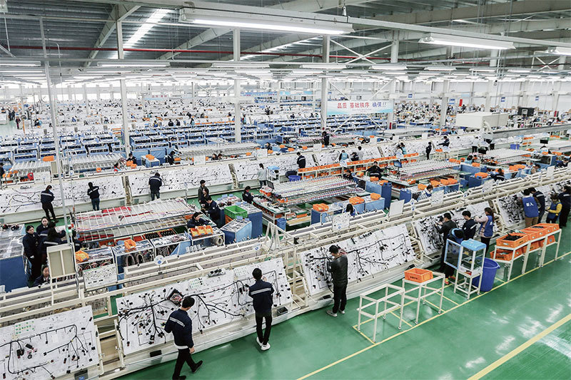 沒有理想支撐、沒有工匠精神承載的製造,所謂「中國製造」不過是山寨路邊沒有靈魂的野鬼孤魂。圖為淮北一線束組裝工廠。(AFP)