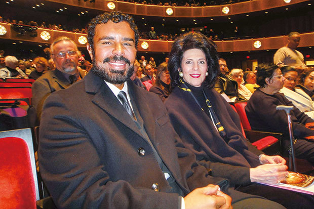特朗普公司銷售總監Susan James(右)和建築設計師Inrico Demorc一起觀看神韻紐約藝術團3月7日在林肯中心大衛寇克劇院的晚場演出,盛讚其為高尚的體驗。(攝影/滕冬育)