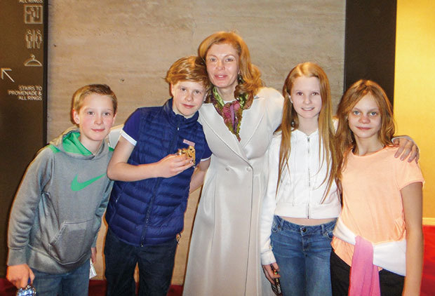 俄羅斯籍知名影星Amaliya Mordvinova,3月9日下午,帶領10多名孩子前往紐約林肯中心觀賞神韻演出,她讚歎神韻是「最高水準演出,帶我入仙境」。(攝影/滕冬育)