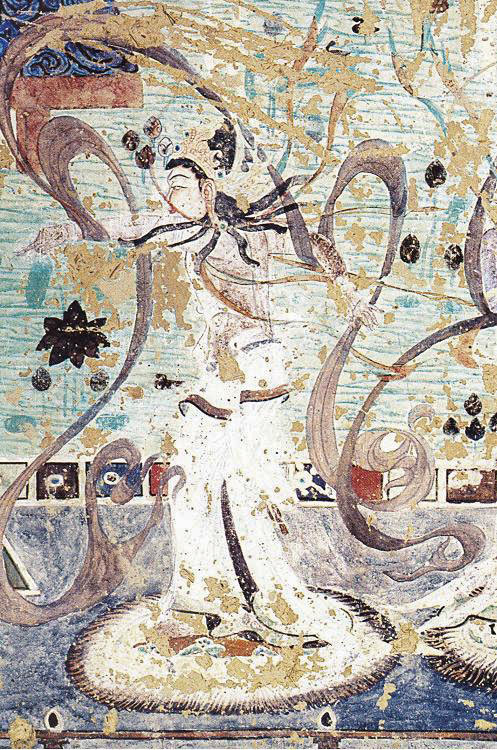 莫高窟220壁畫中的跳舞的女子。唐朝初期。(公有領域)