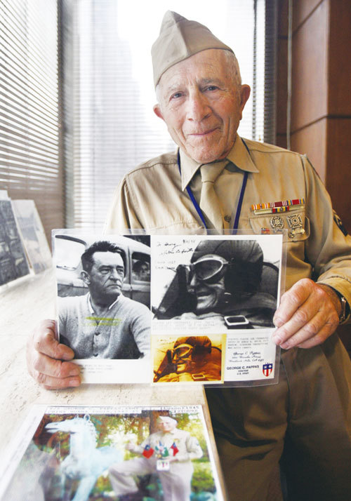2008年3月16日武漢,美國飛虎隊老兵重回中國,展示陳納德將軍的照片。(Getty Images)