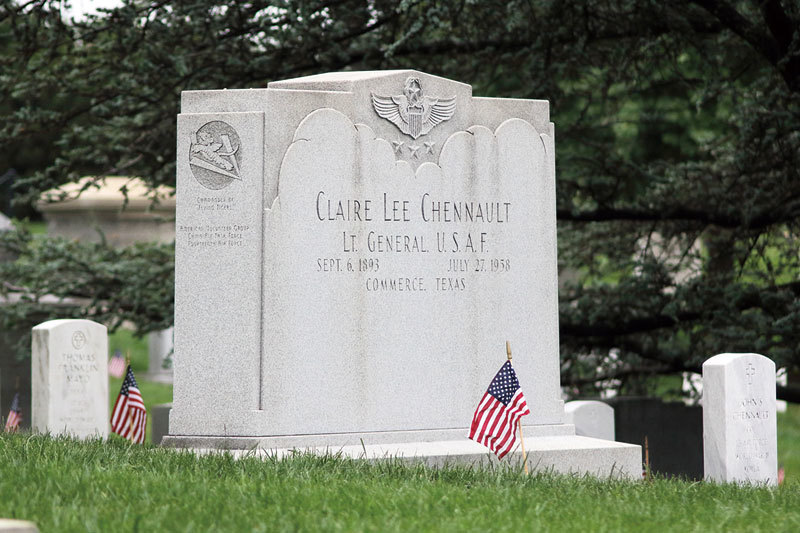 即使在臥病期間,陳納德仍不間斷的寫信給參眾院議員,呼籲關心共黨在世界的擴張以及支持在臺灣的中華民國。圖為華盛頓特區阿靈頓軍人公墓中的陳納德將軍之墓。(Greenmars/Wikimedia Commons)