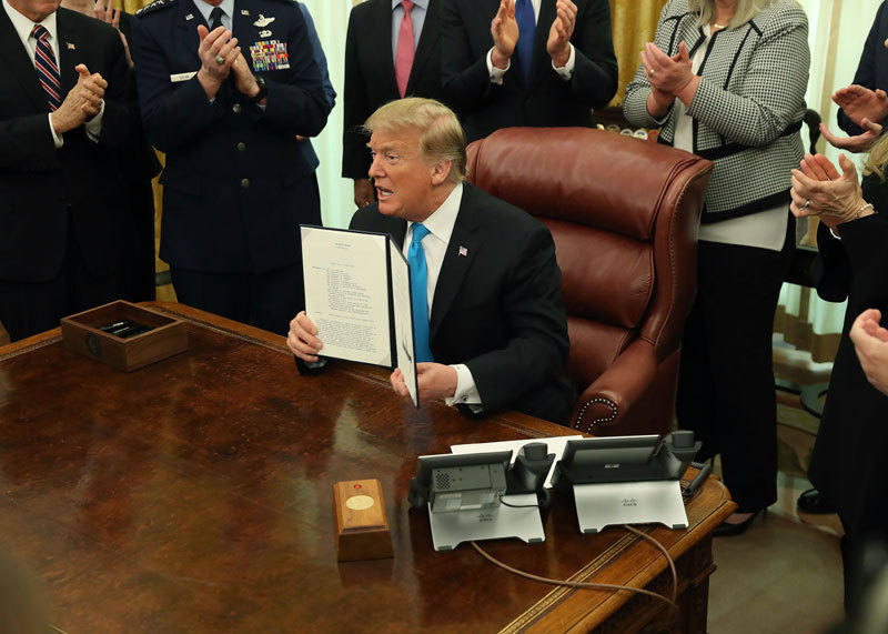 美國總統特朗普2月19日簽署一項指令,要求美國國防部起草成立太空軍法案,並提交給國會。(Getty Images)