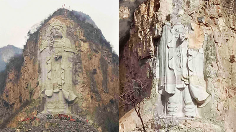 2月2日,中共河北省當局將一座世界最高的摩崖石刻立式觀音像的上半身炸得粉碎。幾天後,為防止觀音像被重建,其下半身又被徹底炸毀!這座觀音像耗時5年建成,花費1700萬元人民幣!