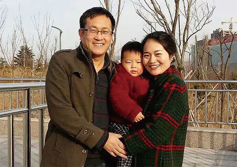 中國維權律師王全璋律師2015年7月10日被抓捕,「被失蹤」長達1097天。圖為王全璋遭抓捕前與妻子李文足和兩歲兒子合影。(大紀元)