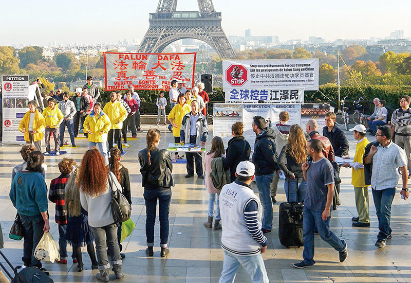 至今為止,全世界已有21萬法輪功學員向中共最高法院、最高檢察院控告迫害法輪功的元凶江澤民。圖為2015年海外法輪功學員在巴黎聲援訴江活動。(明慧網)