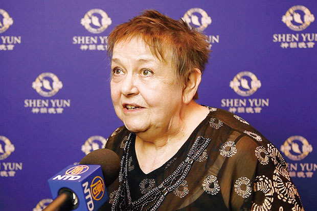 3月17日,波蘭著名社會活動家、知名記者Jadwiga Chmielowska在德意志歌劇院觀看美國神韻國際藝術團的演出。(新唐人電視臺)