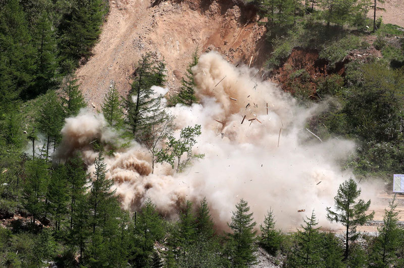 北韓不只寧邊有核設施,特朗普告訴金正恩,他已掌握北韓其他一些核設施的具體地點和場所,讓金非常吃驚。圖為2018年5月24日北韓拆除豐溪里核試驗場。(AFP)