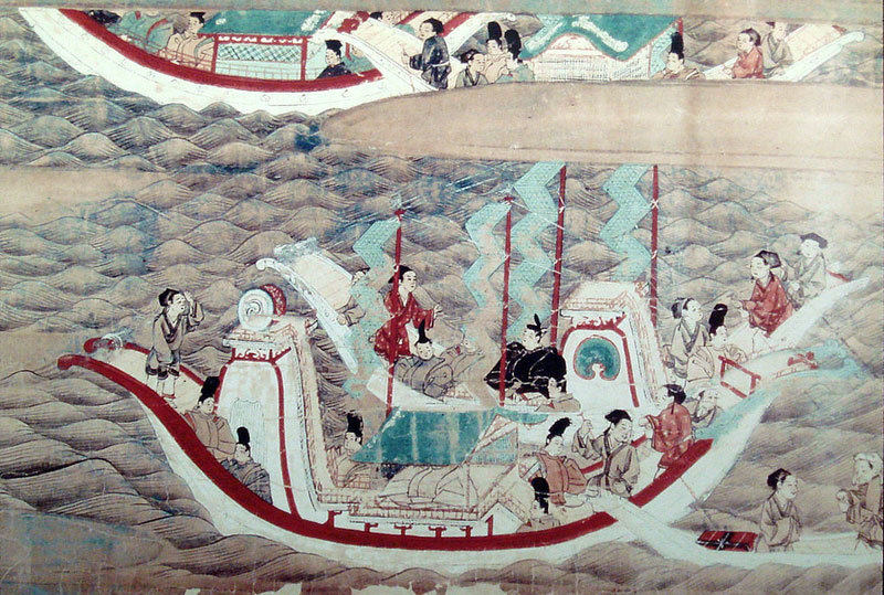 堀井說,日本採用的第一個年號「大化」就是崇尚大唐文化的標誌。日本對古代中國存有深深的敬重。圖為〈東征傳繪卷〉描繪的日本遣唐使乘船赴唐的景象。(PHGCOM/維基百科公有領域)