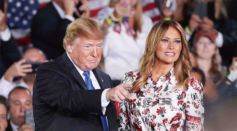 2019年2月18日,特朗普總統偕夫人在邁阿密向委內瑞拉裔社區講話,表示社會主義打著進步的旗幟,但最終帶來的只有貪腐、剝削和毀滅。(Getty Images)