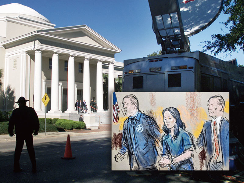4月8日,擅闖特朗普總統冬季白宮的中國女子張玉婧第二次出庭。(新紀元合成圖)