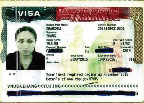 上海出生的張玉婧被捕時,身上有兩本中國護照,一本於2017年到期,另一本有效期至2027年;她2016年獲美方發出商務簽證,可在2026年前多次入境美國。