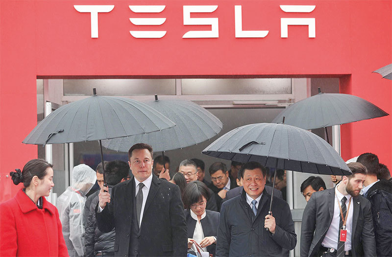 2018年7月10日,特斯拉高調與上海市政府簽訂落戶協議。圖為2019年1月7日,特斯拉CEO馬斯克親臨上海進行破土典禮。(AFP)