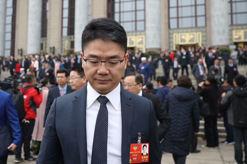 今年46歲的劉強東是中共的「紅頂商人」,頭戴中共政協委員的大帽,且兼任中國民間商會副會長。圖為劉強東參加2018年中共兩會。(大紀元資料室)