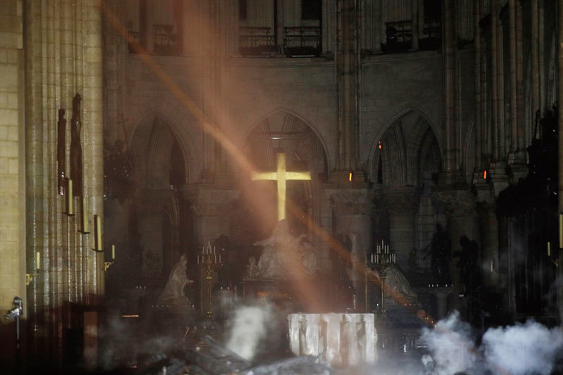據媒體報導,15日深夜,當大火被撲滅後,消防員及媒體記者打開教堂大門時,驚訝地看到,在滿眼煙霧及瓦礫中,教堂內的十字架完好無損,並因光線透進而閃爍發光。相關照片在社交媒體上熱傳,痛心不已的人們又燃起了希望。