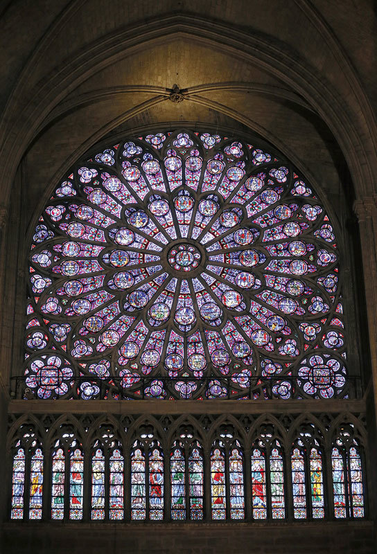 玫瑰窗是三個巨大的圓形彩色玻璃窗,位於大教堂的三個主要入口上,可追溯到13世紀。(AFP)