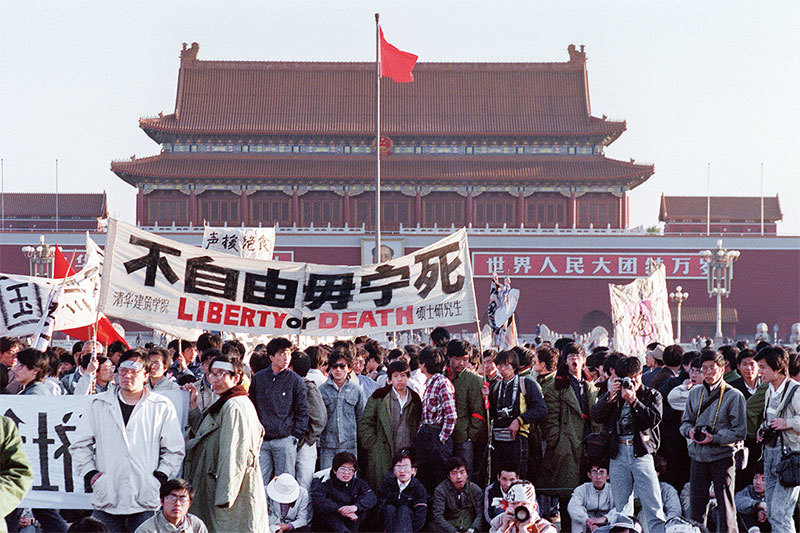 「六四」已成為北京高官的「敏感日期」。曾慶紅此時跳出來攪局,欲藉紀念胡耀邦來煽動民運人士與習當局唱對臺戲。圖為1989年「六四」屠殺前夕的天安門。(AFP)
