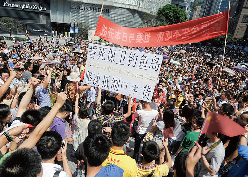 2012年9月15日,周永康利用釣魚島事件鼓動一些人以反日遊行為藉口,上街打砸搶製造混亂,江派趁機亂中奪權。圖為重慶反日遊行。(AFP)