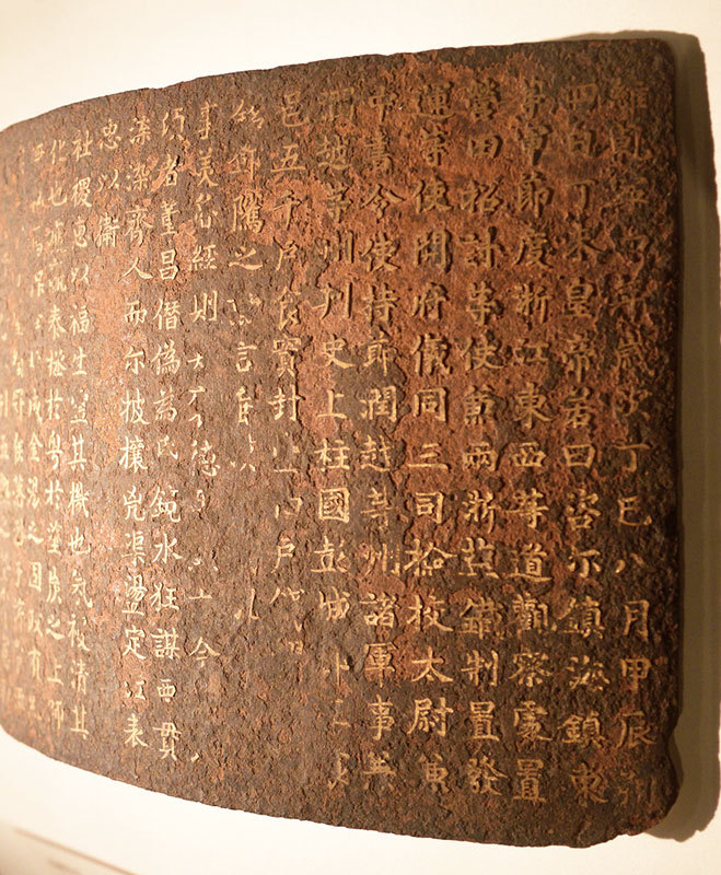 唐代錢鏐鐵券,是中國現存四個丹書鐵券實物中,年代最早的一個。丹書鐵券,亦作丹書鐵契、金書鐵券、鐵券、誓書,是天子頒發給功臣、重臣的一種帶有獎賞和盟約性質的憑證。(Siyuwj/Wikimedia Commons)