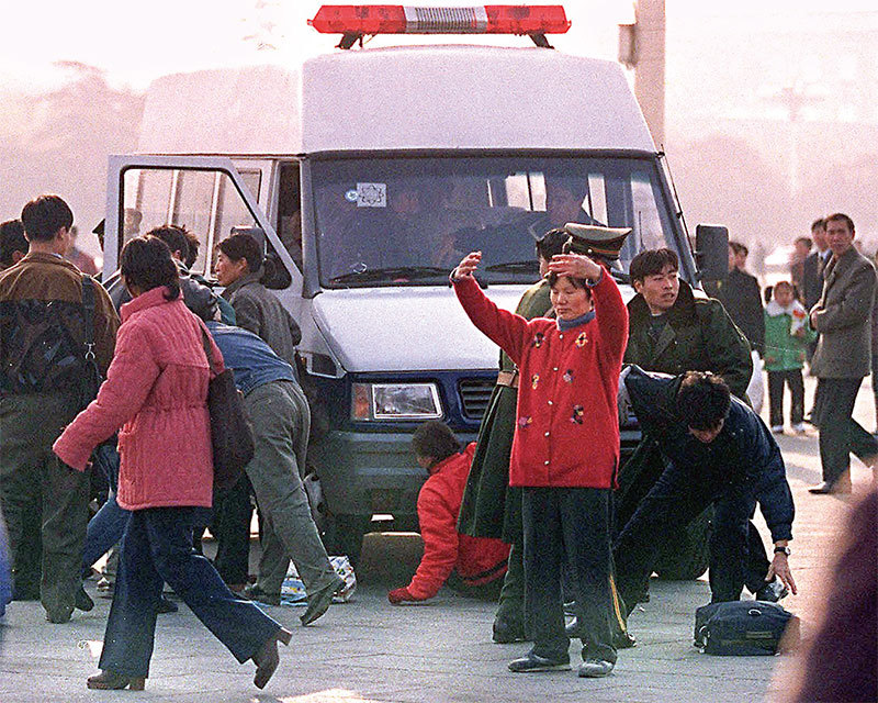 2018年7月,美國發布《推進宗教自由部長級會議:關於中國的聲明》,譴責中共迫害法輪功、維吾爾人、藏傳佛教徒等。圖為1999年11月15日法輪功學員在北京天安門廣場遭非法抓捕。(AFP)