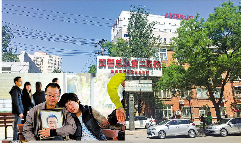 2016年大學生魏則西之死,曝光了百度與武警醫院勾結,利用醫學信息排名給醫院拉廣告斂財的黑幕。圖中為魏則西的雙親抱著他的遺像。(新紀元合成圖)