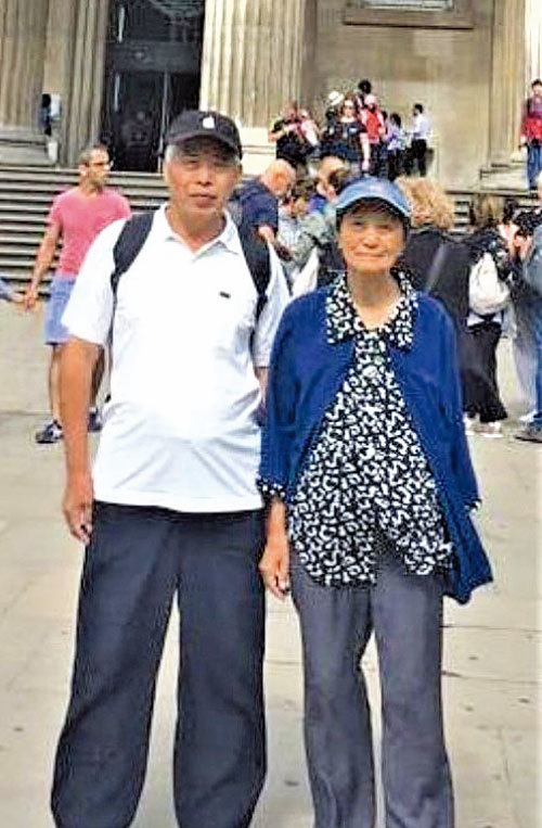 張華父母2018年外出旅遊的照片,看不出兩人都80歲了。(新紀元)