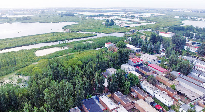 專家指雄安新區選在河北北部平原一個大窪地(中心是白洋淀)的邊坡上,平均海拔10米左右,歷史上洪災頻發,未來需要按照極高的洪水標準設防。圖為2016年白洋淀內的東淀頭村航拍。(大紀元資料室)