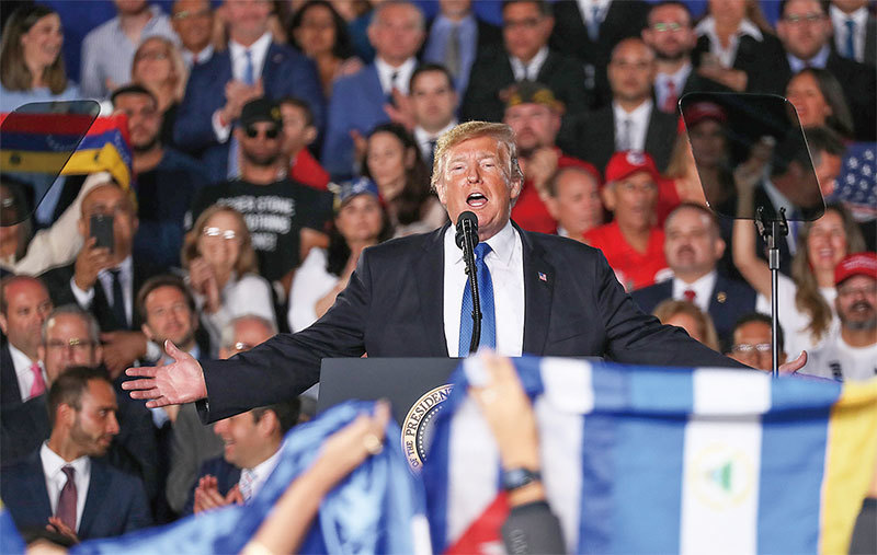 「社會主義承諾繁榮,卻帶來貧困;承諾團結,卻帶來仇恨與分裂;承諾一個更美好的未來,卻總是回歸過去最黑暗的篇章。」今年2月18日特朗普在邁阿密對委內瑞拉裔美國人的演講所言。(Getty Images)