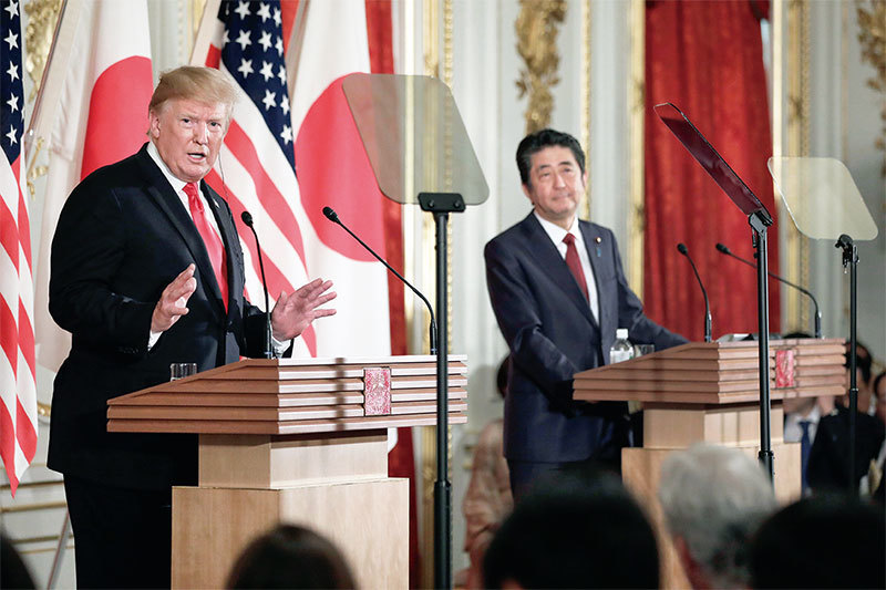 特朗普(左)近日在日本訪問時說,北京希望達成他們在試圖重新談判之前的交易,但美國現在尚未準備好與中國達成協議。(AFP)