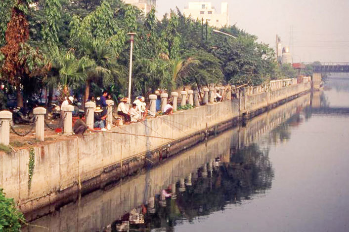 50至60年代,臺灣經濟初起飛,伴隨著城市人口激增,沿岸違章工廠林立,致使工業、家庭廢水汩汩傾注河內。「污染」成為城市子民高漲的民怨。愛河失卻了浪漫,魚蹤杳然,惡臭四溢,人人掩鼻而過。整治愛河成了歷任市長首要之務。