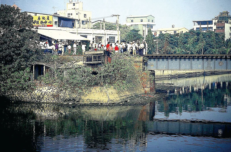 1994年文化愛河協會帶領市民認識愛河的前世今生,追尋愛河上第一座百年鐵道橋的故事。此百年鐵道橋於1995年吳敦義市長任內拆掉。(許玲齡提供)