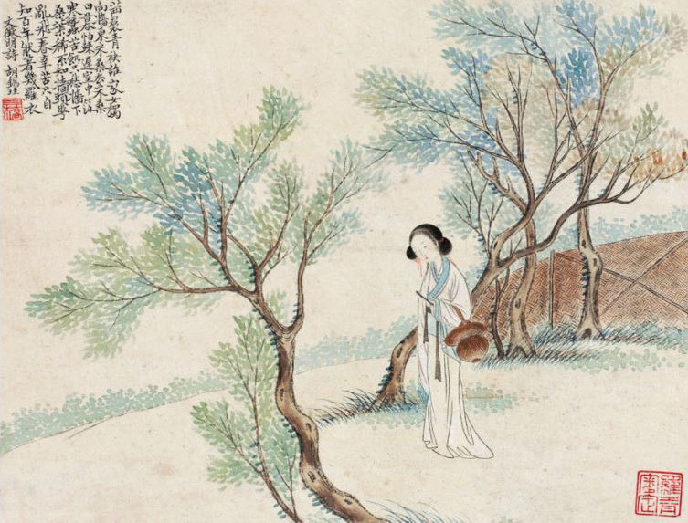 《列女圖》之「羅敷採桑」,清改琦繪。(公有領域)
