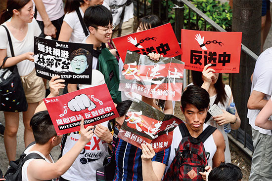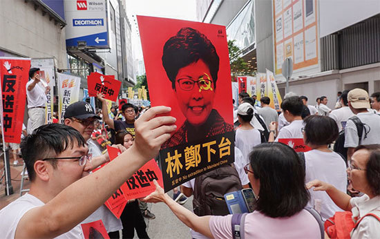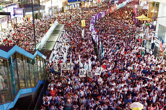 6月9日103萬香港市民上街遊行,抗議香港政府修訂逃犯條例,並要求林鄭月娥下台。(大紀元)