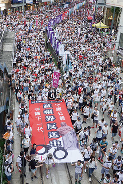 6月9日周日,「六四」30周年剛剛過去幾天,香港就爆發了103萬人的抗議大遊行,空前規模的港人上街對惡法說不,浩浩蕩蕩的隊伍從下午2點半一直到深夜。晚上9時許,主辦方民陣公布有103萬人參與遊行,成為香港回歸以來單日參與規模最大的一次遊行示威。也比1989年北京天安門大屠殺後香港百萬人大遊行的人數還多幾萬。